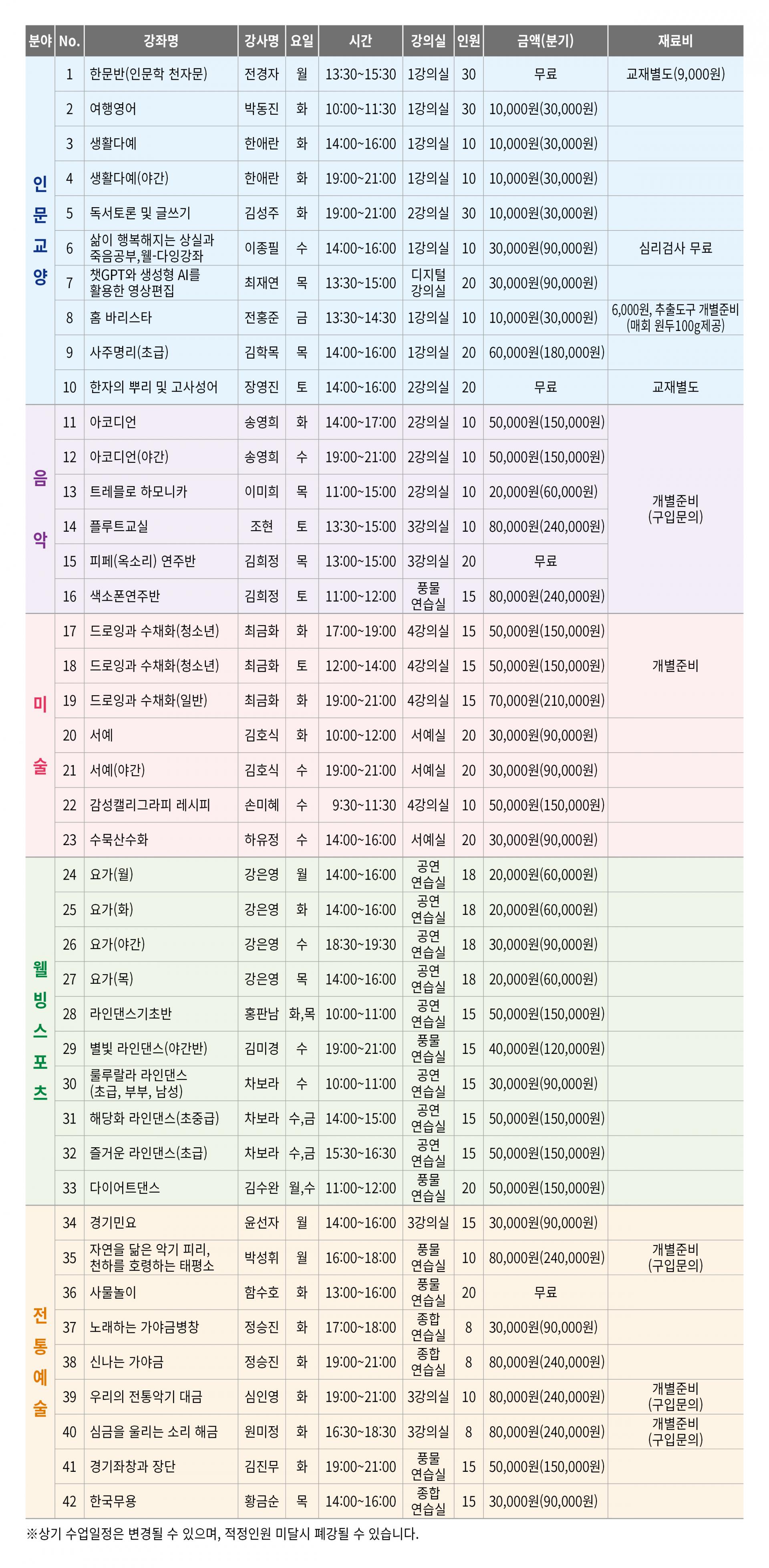 문화학교 수강 및 강좌안내